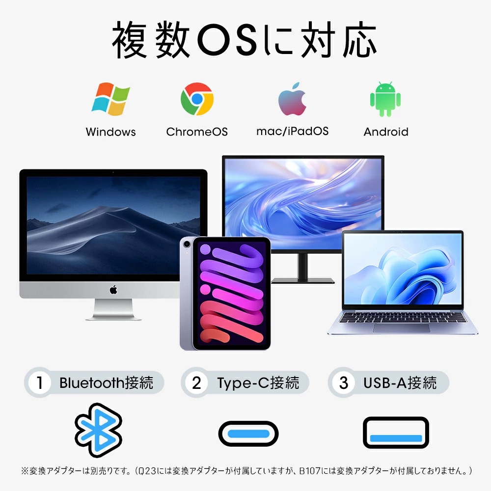 Windows、Chrome、Mac/iPodOS、Androidなどの様々なOSに対応